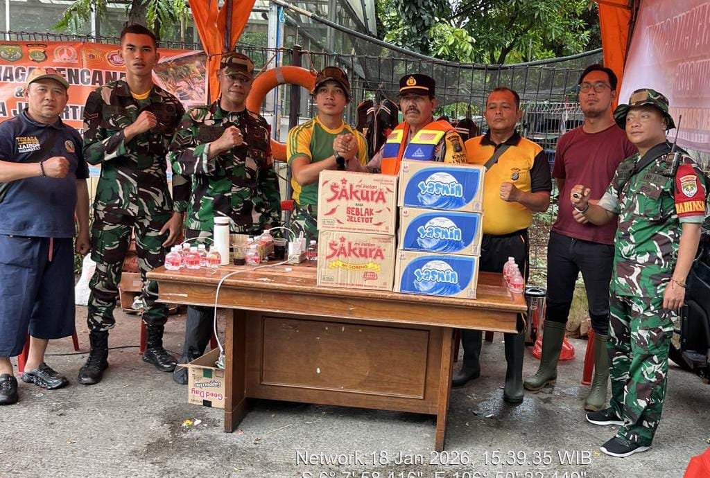 SwaraJabar.com | Jakarta — Satuan Armed 10 Bogor menyalurkan bantuan logistik ke Posko Siaga Bencana Tiga Pilar di Kelurahan Pademangan Barat, Kecamatan Pademangan, Jakarta Utara, Minggu (18/1/2026). Bantuan ini diberikan sebagai bentuk kepedulian terhadap kesiapsiagaan warga menghadapi potensi bencana di wilayah tersebut.