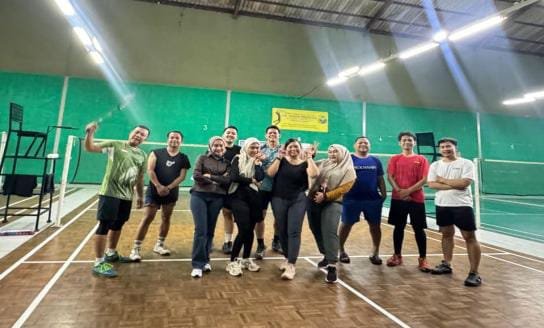 Latihan badminton berlangsung dengan suasana penuh semangat dan sportivitas. Para peserta terlihat kompak dan menikmati setiap sesi permainan, menjadikan kegiatan ini sebagai agenda positif di luar aktivitas kerja sehari-hari.