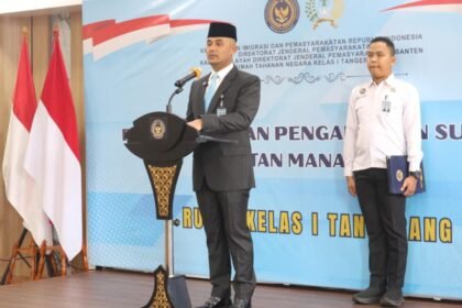 SwaraJabar.com | Tangerang — Kepala Rumah Tahanan Negara (Rutan) Kelas I Tangerang, Irhamuddin, memimpin langsung pengambilan sumpah/janji jabatan Kepala Kesatuan Pengamanan Rutan (Ka. KPR) yang baru ...