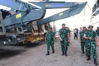 SwaraJabar.com | Belawan – Kapal ADRI LIII yang mengangkut Alat Material Zeni (Almatzi) bantuan dari Kepala Staf Angkatan Darat (Kasad) Jenderal TNI Maruli Simanjuntak, M.Sc., tiba di Dermaga 202 Ujun...