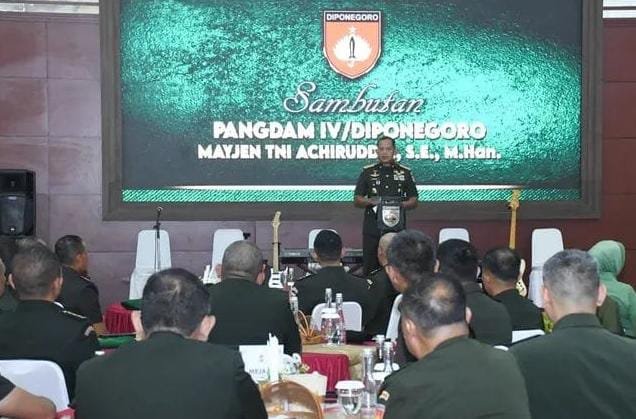 SwaraJabar.com | Semarang – Pangdam IV/Diponegoro Mayjen TNI Achiruddin, S.E., M.Han., memimpin Tradisi dan Serah Terima Jabatan (Sertijab) sejumlah pejabat Kodam IV/Diponegoro yang digelar di Aula Makodam IV/Diponegoro, Kamis (8/1/2026). Kegiatan ini merupakan bagian dari mekanisme pembinaan personel dan organisasi guna menjamin kesinambungan kepemimpinan serta meningkatkan efektivitas pelaksanaan tugas pokok satuan.
