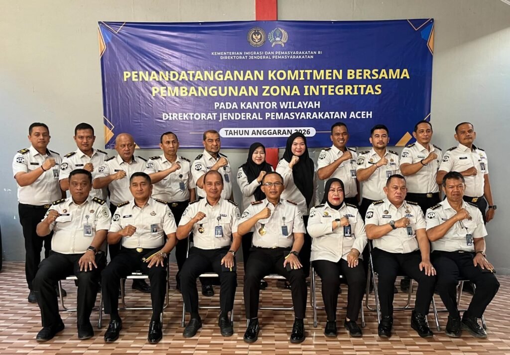 SwaraJabar.com | Banda Aceh – Kantor Wilayah Direktorat Jenderal Pemasyarakatan (Ditjenpas) Aceh menunjukkan keseriusan dalam mewujudkan reformasi birokrasi yang bersih dan melayani di tanah Serambi Mekkah. Langkah ini diawali dengan prosesi penandatanganan Piagam Komitmen Bersama Pembangunan Zona Integritas (ZI) menuju WBK dan WBBM, Selasa (03/02/2026).